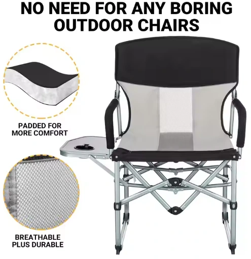 বিবিকিউ ক্যাম্পিং পিকনিক চেয়ার, ভাঁজ ক্যাম্পিং চেয়ার, ভারী শুল্ক পোর্টেবল ডিরেক্টরস চেয়ারগুলি বয়স্কদের জন্য সাইড টেবিল জাল ব্যাক কমপ্যাক্ট স্টাইল আউটডোরের জন্য