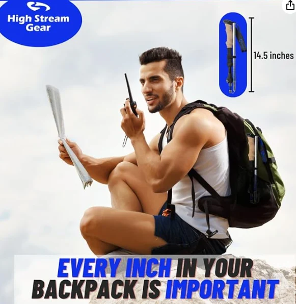 হাইকিয়ার্সের জন্য হাইকিং মেরুগুলি 37 সেমি (14.5 ইঞ্চি) থেকে নীচে নেমে যায় এবং আপনার প্রয়োজনীয়তা এবং ব্যক্তিগত গিয়ারের জন্য আপনাকে স্থান রেখে প্রতিটি মাত্র 10 আউন্স ওজন করে।
