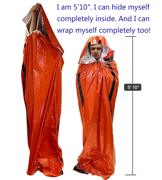জরুরী বেঁচে থাকার স্লিপিং ব্যাগ আপনার সমস্ত আবহাওয়া, সমস্ত asons তু এবং সমস্ত পরিস্থিতিতে বেঁচে থাকার সম্ভাবনা বাড়িয়ে তুলতে পারে। এটি স্থান অনুসন্ধানের জন্য নাসা দ্বারা ডিজাইন করা টেকসই অন্তরক মাইলার উপাদান দিয়ে তৈরি। এটি শরীরের তাপের 90% পিছনে ধরে রাখে / প্রতিফলিত করে। এটি পুনরায় ব্যবহারযোগ্য, জলরোধী এবং উইন্ডপ্রুফ।