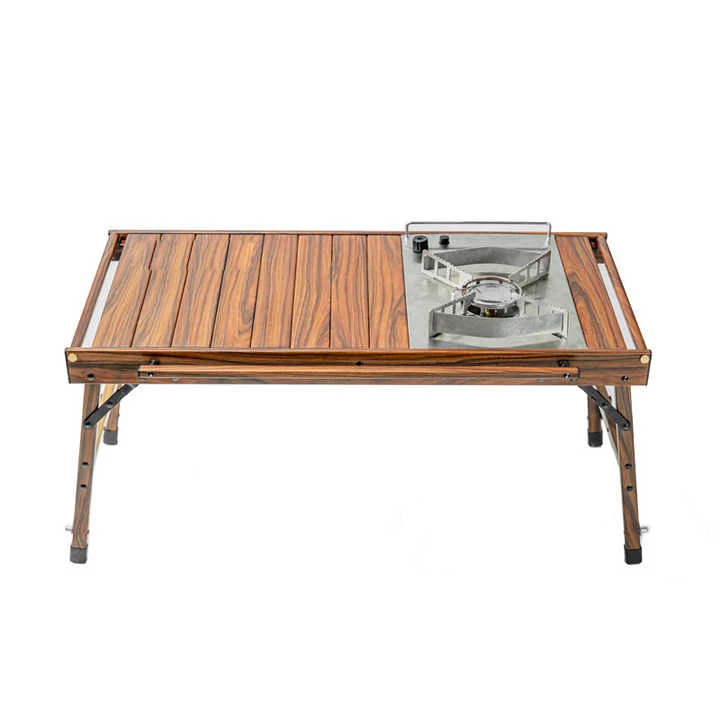কাঠের শস্যের বহিরঙ্গন টেবিল ভাঁজ করা। কাঠের ডেস্কটপের ওজন এবং রক্ষণাবেক্ষণের সমস্যাগুলি এড়িয়ে যাওয়ার সময় কাঠের ডেস্কটপের অনুরূপ একটি ভিজ্যুয়াল এফেক্ট রোভিং।