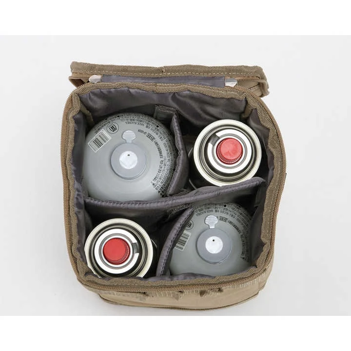গ্যাস স্টোভ ক্যানিস্টার পাত্র বহন ব্যাগ, অন্যান্য অনুরূপ আকারের পানি বুটেন জ্বালানী ক্যানিটার। অভ্যন্তরীণ বিভাজন সরানো হলে অন্যান্য ক্যাম্পিং আনুষাঙ্গিকগুলির জন্যও ব্যবহার করা যেতে পারে
