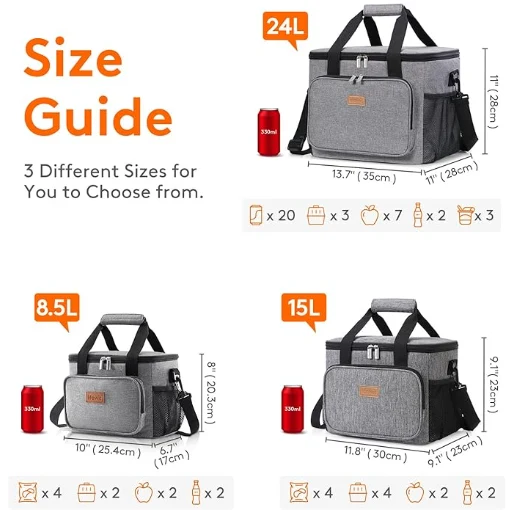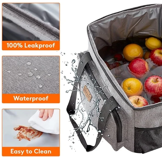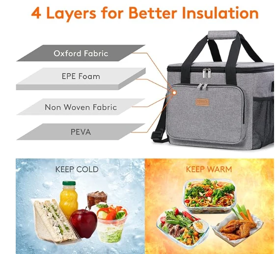 বৃহত্তর ক্ষমতা: মাত্রা - 13.8 "(35 সেমি) × 11" (28 সেমি) × 11 "(28 সেমি)। প্রাপ্তবয়স্কদের জন্য লাঞ্চবক্সের সর্বাধিক ক্ষমতা 24 এল, এবং স্যান্ডউইচ, সালাদ, পানীয়, পানীয় এবং ফ্রুটগুলির জন্য আপনার মধ্যাহ্নভোজ যেমন 40 ক্যান (330 এমএল), বা আপনার মধ্যাহ্নভোজনের জন্য সংরক্ষণের জন্য যথেষ্ট প্রশস্ত।