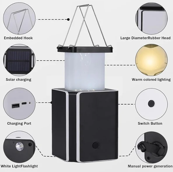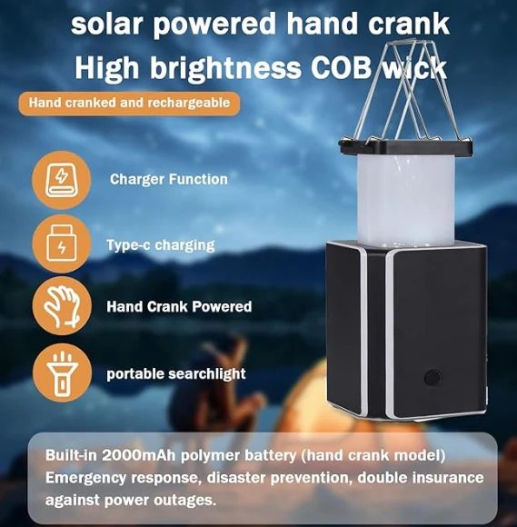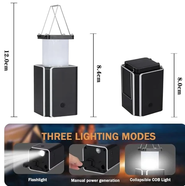 এলইডি সোলার ক্যাম্পিং লাইট, জরুরী ক্যাম্পিং ল্যান্টন লাইট হ্যান্ড-ক্র্যাঙ্ক বিদ্যুৎ উত্পাদন you যদি আপনার চারপাশে চার্জার না থাকে এবং কোনও সূর্য নেই, তবে এই হাত-ক্র্যাঙ্কড জেনারেটর আলো চার্জ করার জন্য উপযুক্ত।