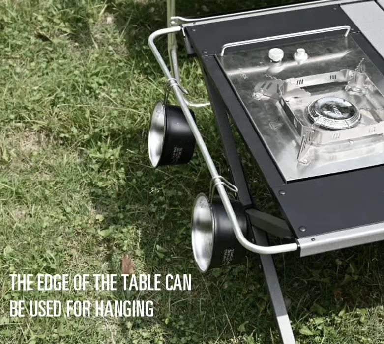 আপনার প্রয়োজন অনুসারে লাইটওয়েট মাল্টিফংশন ভাঁজ আইজিটি টেবিল। ক্যাম্পিং, বারবিকিউ, আউটডোর রান্না এবং আরও অনেক কিছুর জন্য উপযুক্ত। টেবিলের পাশটি থালা বাসন এবং পাত্রগুলি ঝুলতে ব্যবহার করা যেতে পারে