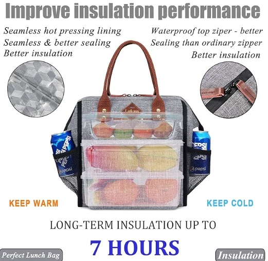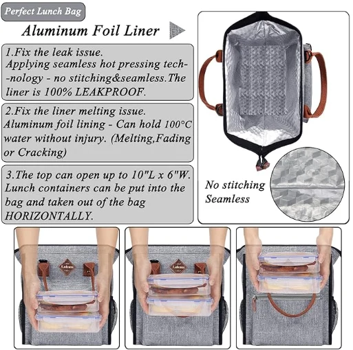আউটডোর অ্যালুমিনিয়াম ফয়েল কুলার ব্যাগ আস্তরণটি 100% ফুটো প্রমাণ, পরিষ্কার করা সহজ এবং সহজেই গলে যাবে না। নাইলন ফ্যাব্রিক জল-প্রতিরোধী এবং শীর্ষ জিপারটি জলরোধী। এই মধ্যাহ্নভোজন ব্যাগটি জলরোধী এবং অন্তরক কাজগুলি দুর্দান্ত।