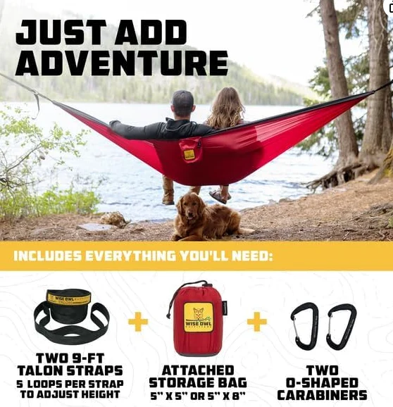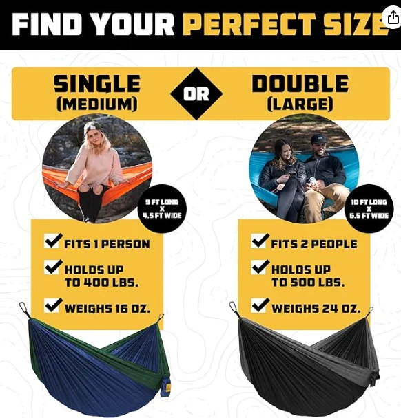 পোর্টেবল 3-ইন -1 ক্যাম্পিং হ্যামক, আমাদের শক্তিশালী হ্যামক একটি বুদ্ধিমান সমাধান যা শেষ পর্যন্ত সেলাই করা হয়! এটি 2, 9-ফিট টালন স্ট্র্যাপস, 2 ও-আকৃতির ক্যারাবিনার এবং একটি সংযুক্ত স্টোরেজ ব্যাগ দিয়ে সজ্জিত। এটি সেট আপ করা সহজ যতটা টেকসই, আমাদের হ্যামক একটি শিবির প্রয়োজনীয়।