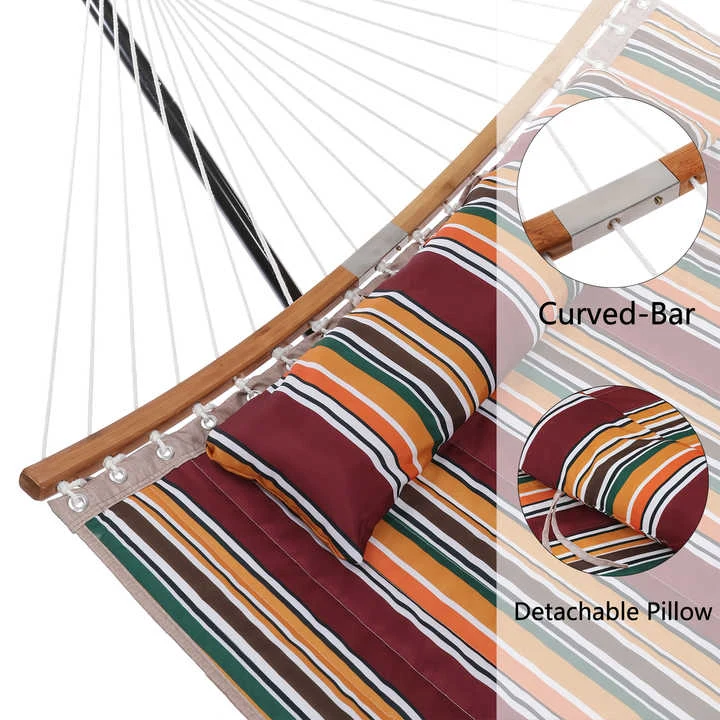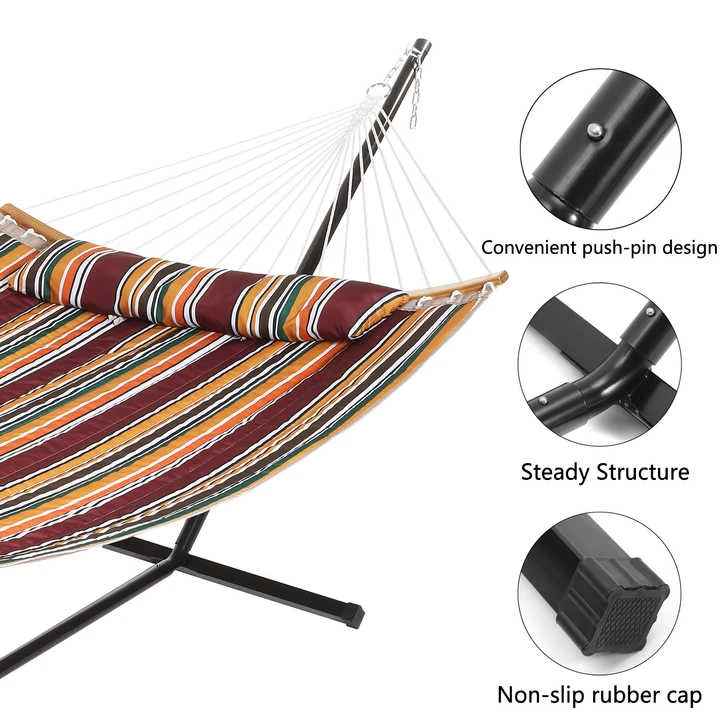 পোর্টেবল নাইলন ক্যাম্পিং হ্যামক। এটি বন্ধুবান্ধব বা পরিবার, এই হ্যামক হ'ল একটি বহুমুখী, কার্যকরী এবং অনন্য উপায় যা তাদের আরাম এবং গুণমানের একটি নতুন অভিজ্ঞতা দেওয়ার জন্য। বারান্দা, এবং বাইরে।