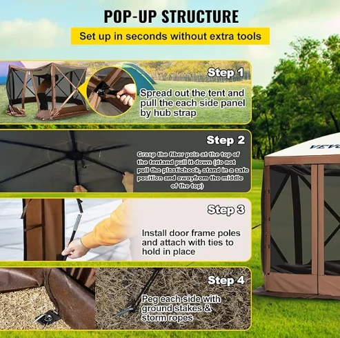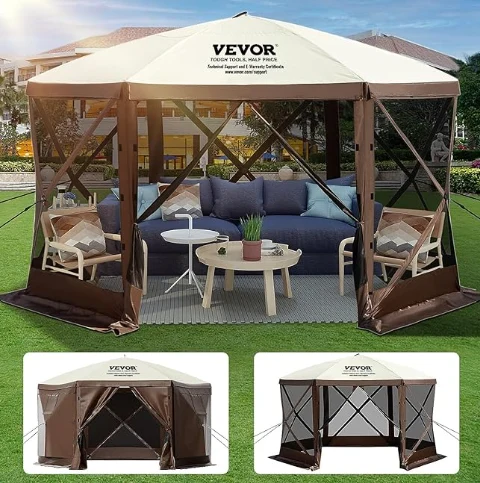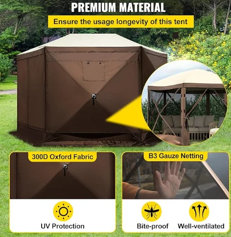 রেইনপ্রুফ পেরোগোলা ক্যাম্পিং ক্যানোপি তাঁবু, ক্যাম্পিং গ্যাজেবো তাঁবু 300 ডি অক্সফোর্ড ফ্যাব্রিক এবং বি 3 গজ জাল দিয়ে তৈরি। এটি আইপিএক্স 3 জলরোধী, কামড়-প্রমাণ এবং ইউভি-প্রুফ। 12 'x 12' গ্যাজেবো ক্যানোপি বহিরঙ্গন আশ্রয় ব্যবহারের জন্য একটি বৃহত স্থান সরবরাহ করে।
