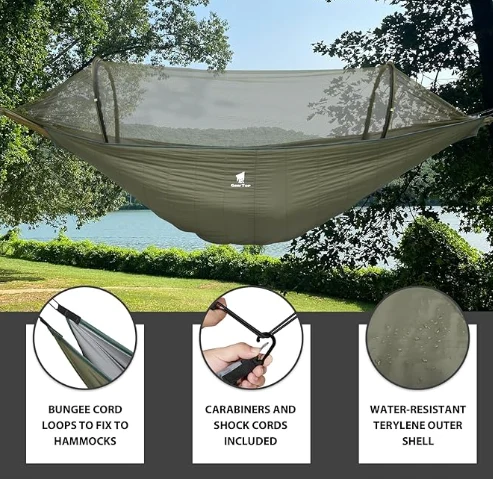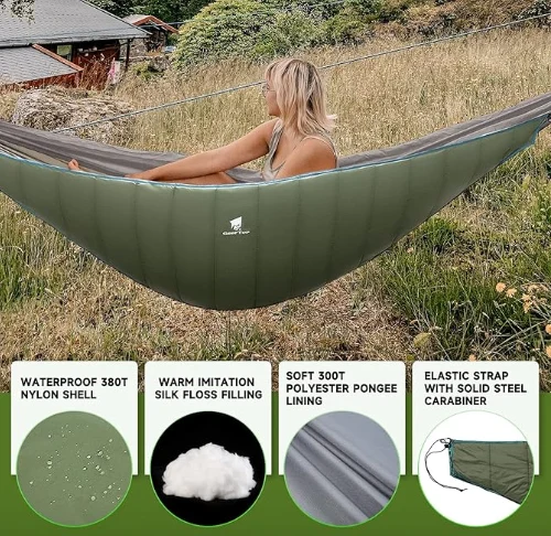 ট্র্যাভেল ক্যাম্পিং হ্যামক, একটি স্লিপিং ব্যাগের স্বাচ্ছন্দ্য এবং একটি হ্যামক ইনসুলেটিং একত্রিত করুন, আপনাকে শীতল আবহাওয়ায় উষ্ণ রেখে কোনও স্ট্যান্ডার্ড আকারের হ্যামকের সাথে ফিট করা আরও সহজ করে তুলুন J এটি ক্যাম্পিং, ব্যাকপ্যাকিং, শিকার, বহিরঙ্গন ক্রিয়াকলাপ, পর্বতারোহণের জন্য উপযুক্ত