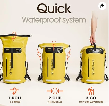 জলরোধী শুকনো ব্যাকপ্যাক ডুফেল ব্যাগ, আপনার গিয়ার ভ্রমণ, কায়াকিং, বাইক চালানো, যাতায়াত, ক্যাম্পিং এবং ফিশিংয়ের সময় সম্পূর্ণ শুকনো থাকে তা নিশ্চিত করার জন্য 100% জলরোধী
